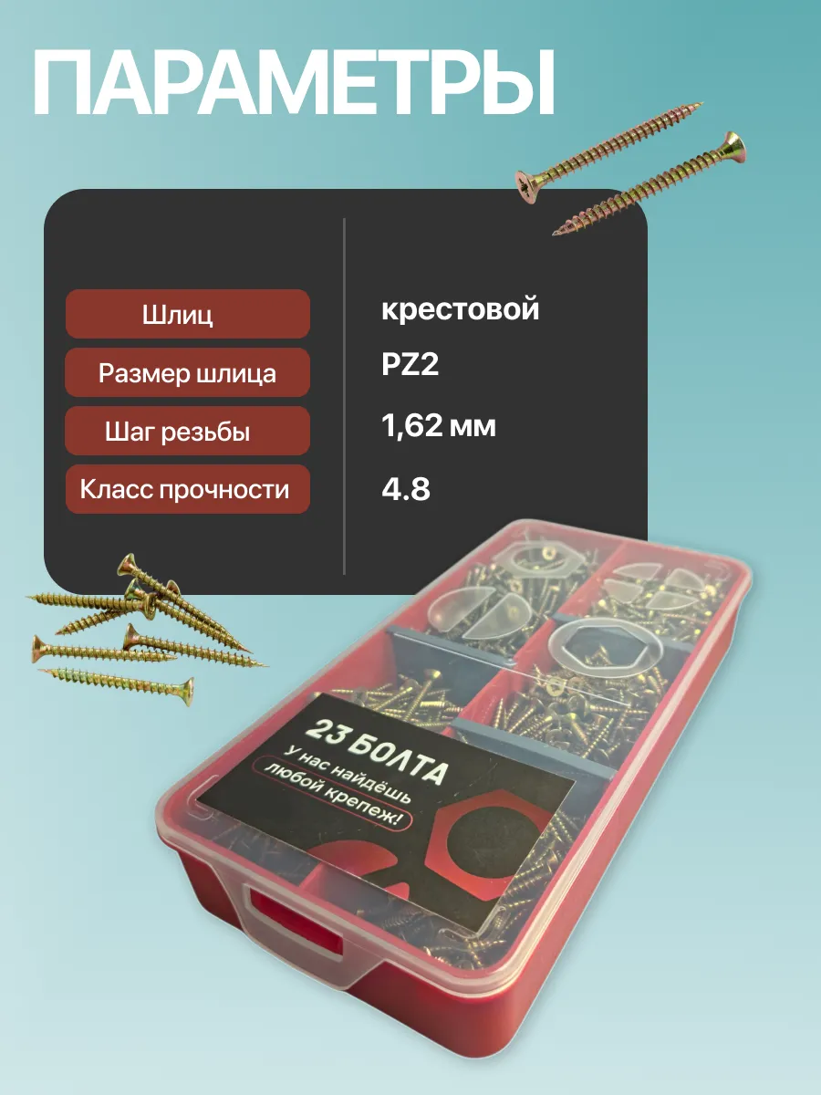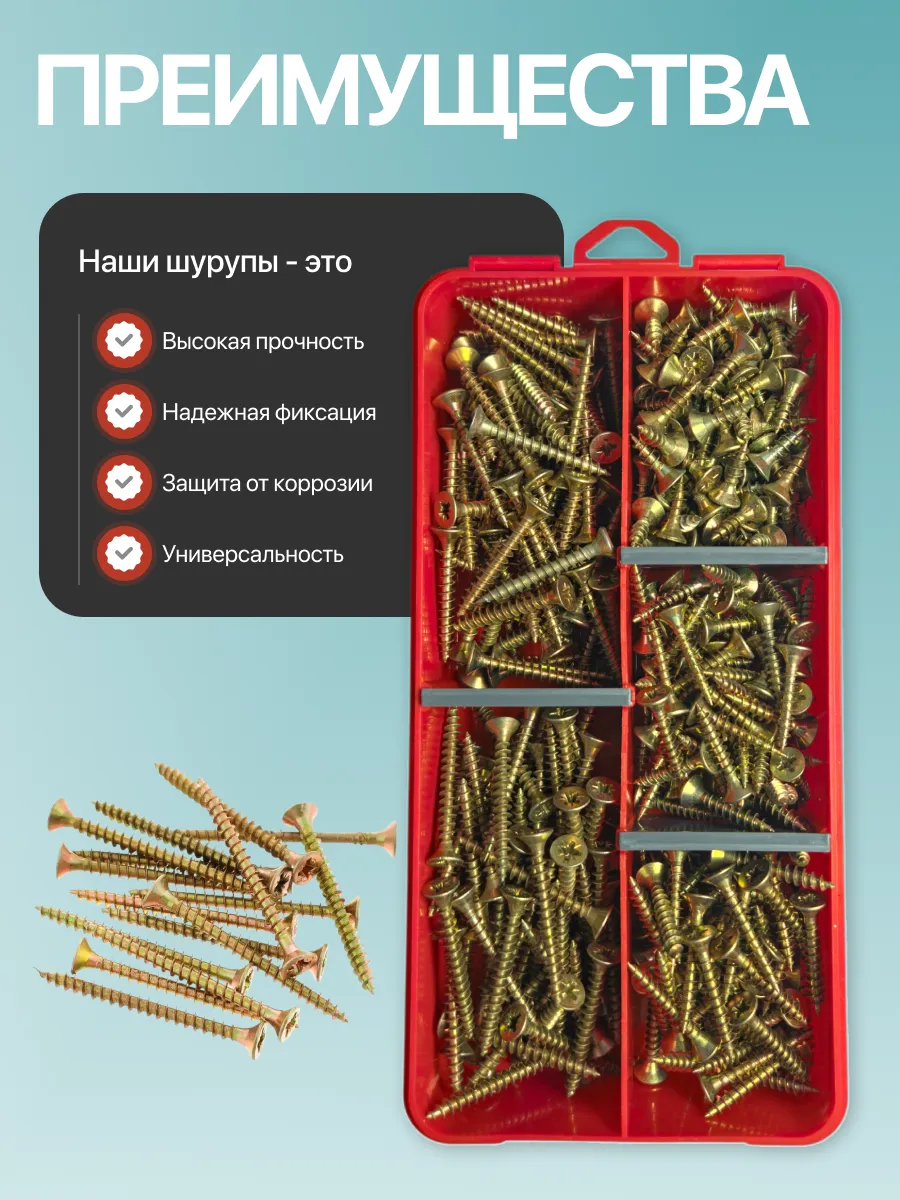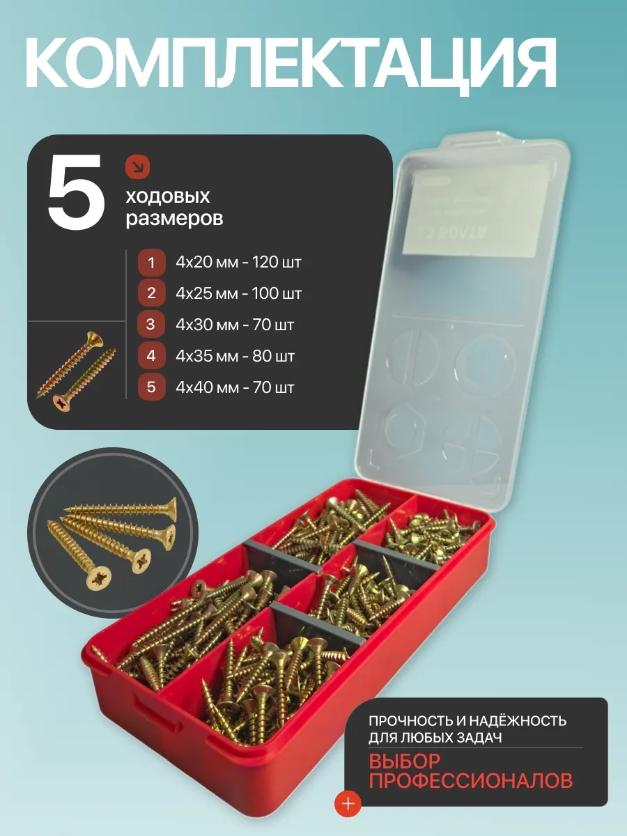 Саморезы по дереву М4 ЖЦ в органайзере НАБОР 1