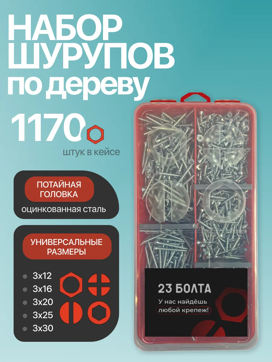 Саморезы потай по дереву БЦ М3 в органайзере НАБОР 1