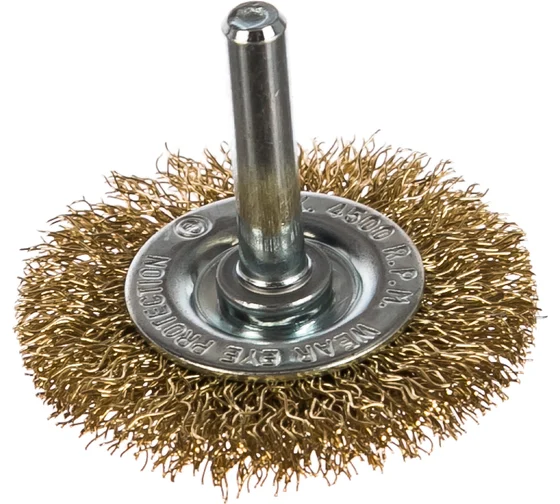Плоская щетка для дрели Matrix 74444 диаметром 50 мм, со шпилькой, с щетиной из латунированной витой проволоки, предназначена для бережной очистки металлических, деревянных, пластиковых поверхностей от загрязнений, старых лакокрасочных материалов и ржавчины. Витая проволока диаметром 0,3 мм проникает в труднодоступные места: пазы, углы, изгибы, узкие участки. Насадку применяют для придания поверхности нужной шероховатости или подчеркивания структуры материала. Хвостовик диаметром 6 мм устанавливается в патрон электродрели, способной работать на рекомендуемой скорости 4500 об/мин. Во время работы следует использовать защитные очки, респиратор, наушники, спецодежду и обувь.