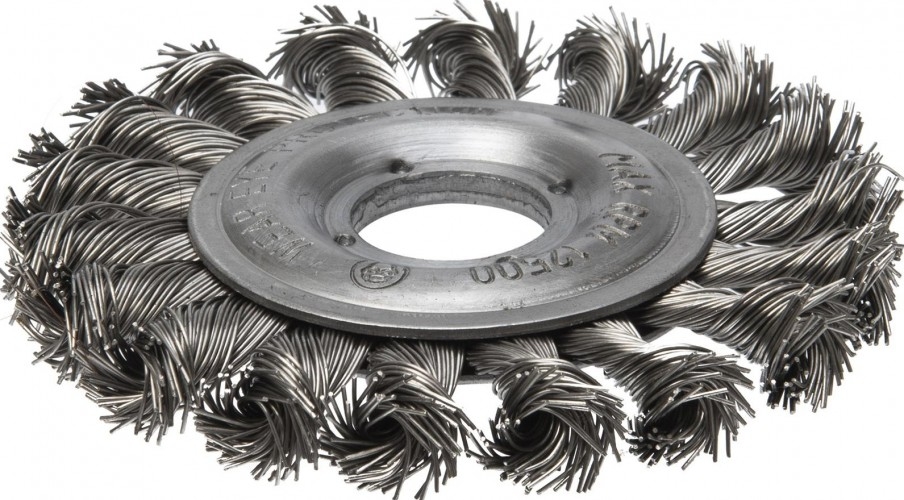 Щетка дисковая цилиндрическая Мастер 075 Профоснастка 20108001 предназначена для угловых шлифовальных машин и заточных станков. Применяется для обработки сварных швов, окалин и ржавчины. Щетка имеет один ряд стальной витой проволоки. Диаметр проволоки – 0.5 мм. Ширина жгута – 11 мм. Длина жгута – 16 мм. Максимальное количество оборотов – 12500 об/мин.
