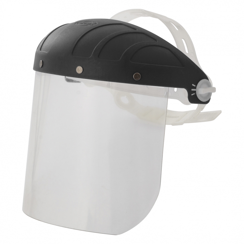 Теменная и налобная ленты регулируются при помощи реечного механизма, обеспечивая комфортную посадку щитка даже при ношении с головным убором.