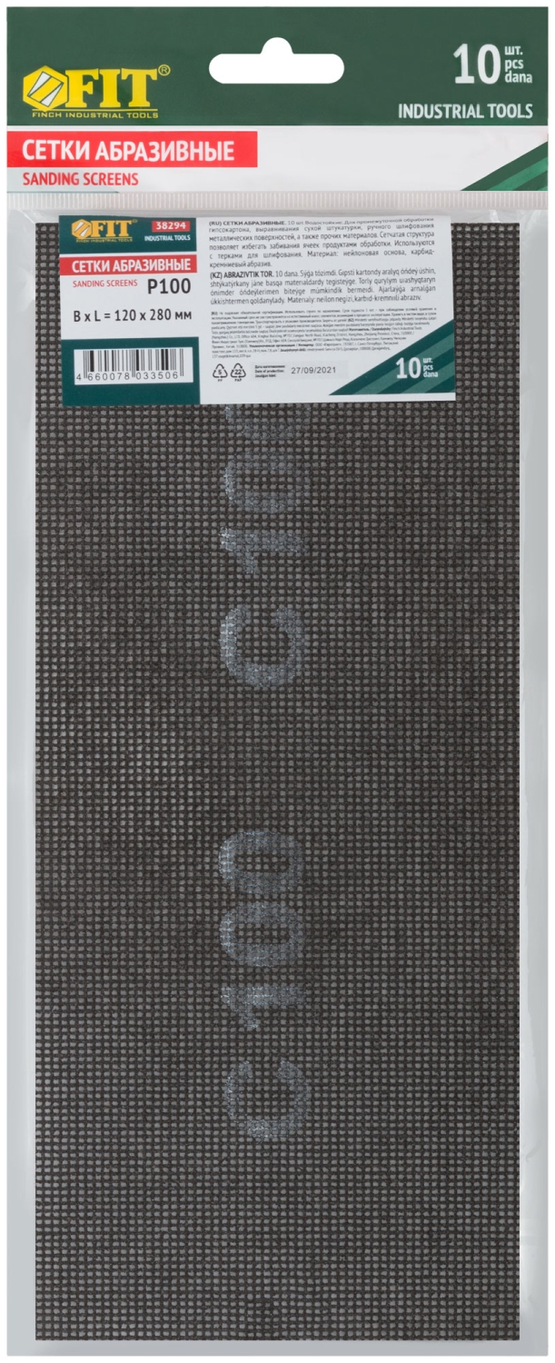 Сетки шлифовальные, нейлоновая основа, 120 х 280 мм, 10 шт. Р 100