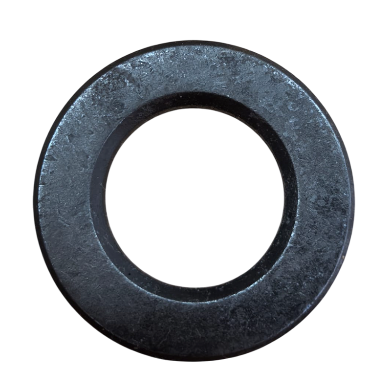 Шайба закаленная плоская с фаской DIN 6916 - специальный крепежный элемент повышенной твердости для высокопрочных предварительно нагруженных болтовых соединений (HV) с диаметром резьбы от М12 до М36 и увеличенными размерами под ключ. Используется для увеличения опорной поверхности резьбового крепежа, что позволяет приложить большое усилие затяжки. изготавливается из углеродистой стали С45 с дополнительной закалкой и отпуском до твердости 300HV, антикоррозийного покрытия не имеет,.