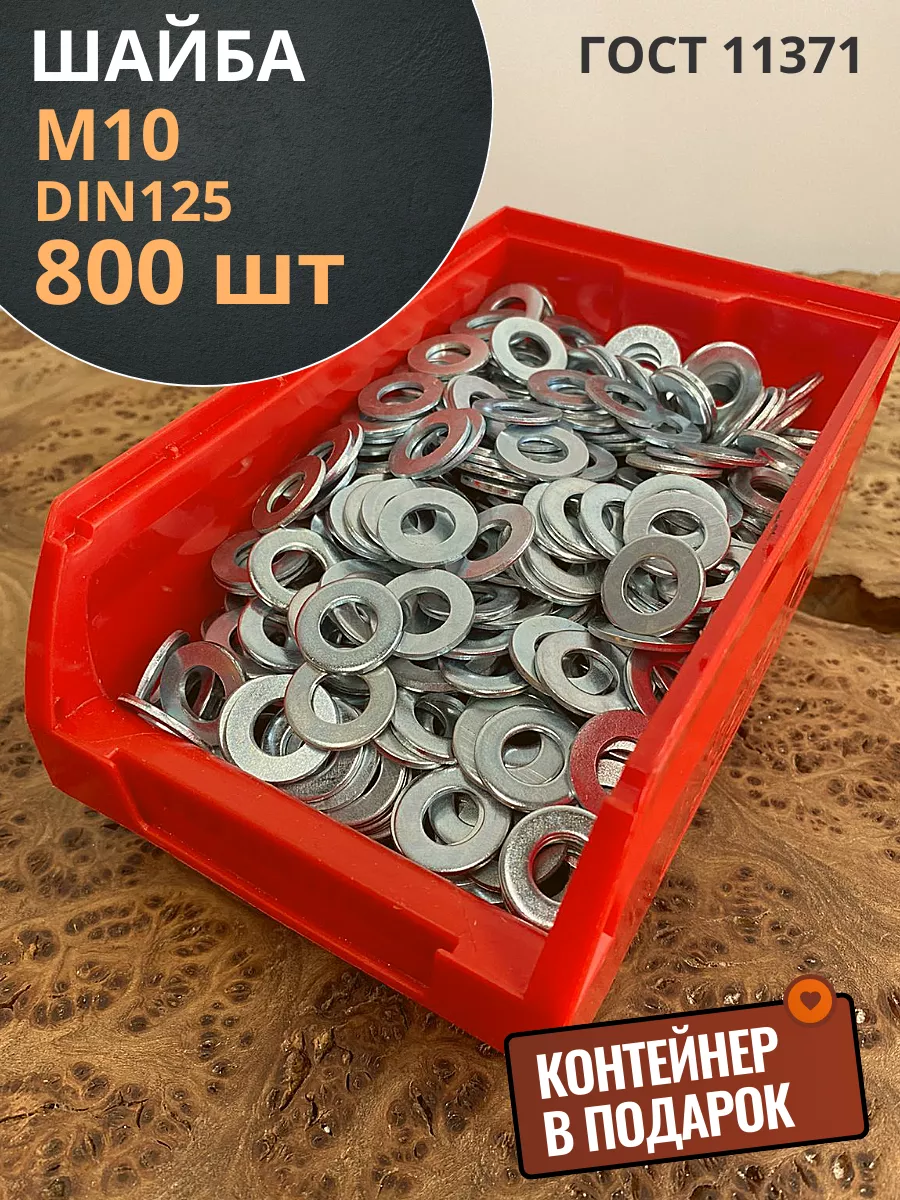 | Шайба М10 оцинкованная DIN125, 800 шт. в контейнере | А21001000032507ф800 | 1 шт. |