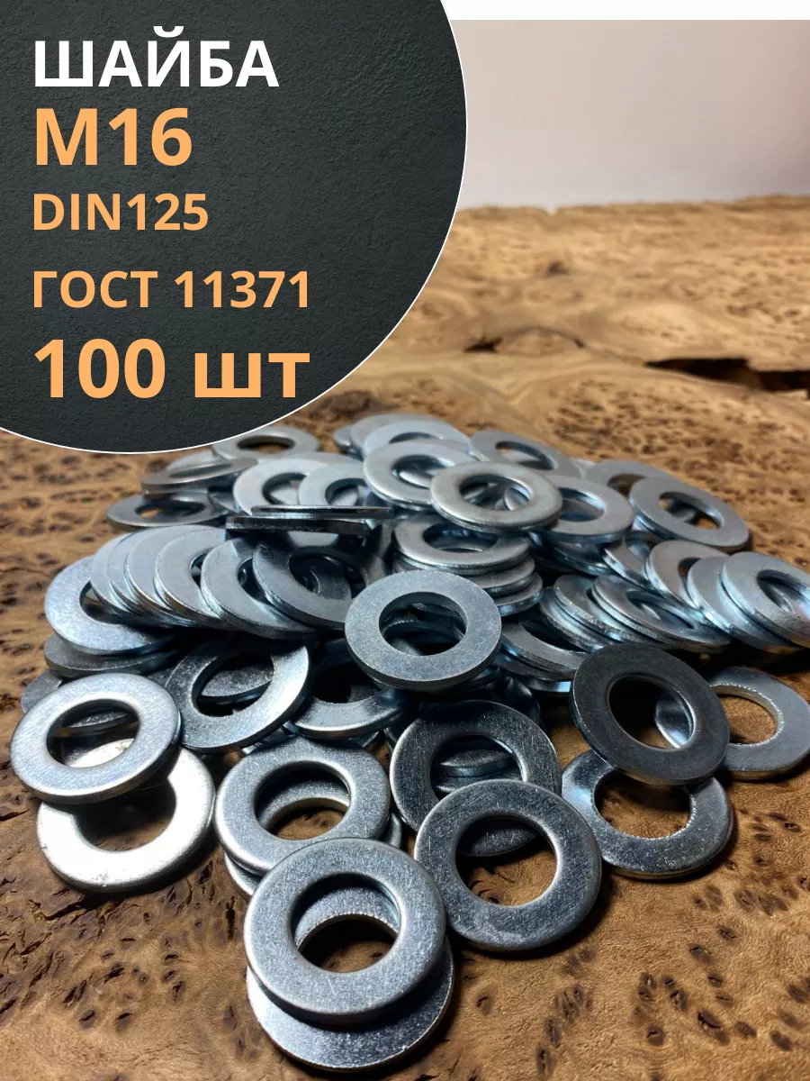 Шайба М16 оцинкованная DIN125, 100 шт.
