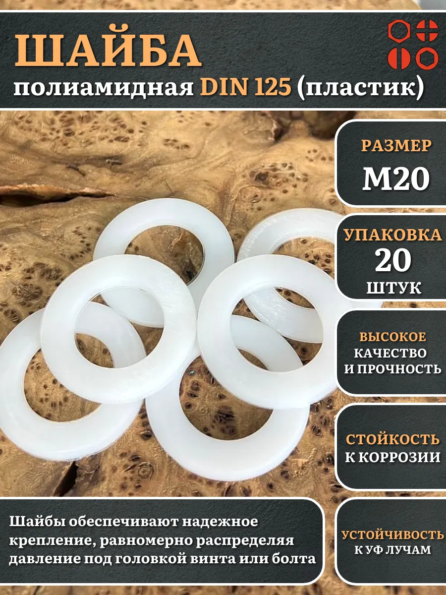 Шайба полиамидная М20 DIN125 (пластик), 20 шт.