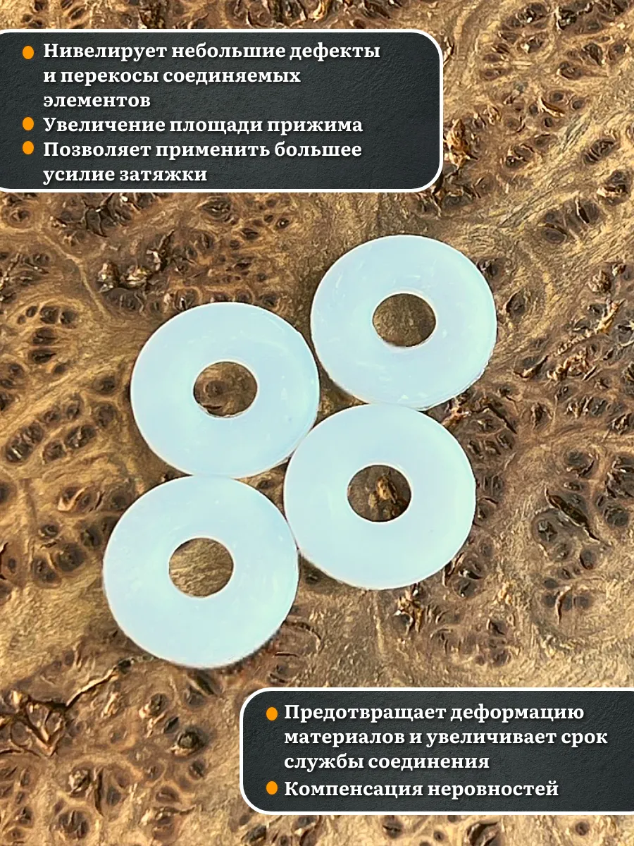 Белая полиамидная шайба DIN 9021 не вызывает коррозии, устойчива к ультрафиолетовому излучению и практически не подвержена старению. Это обеспечивает прочность и долговечность всего крепёжного узла.