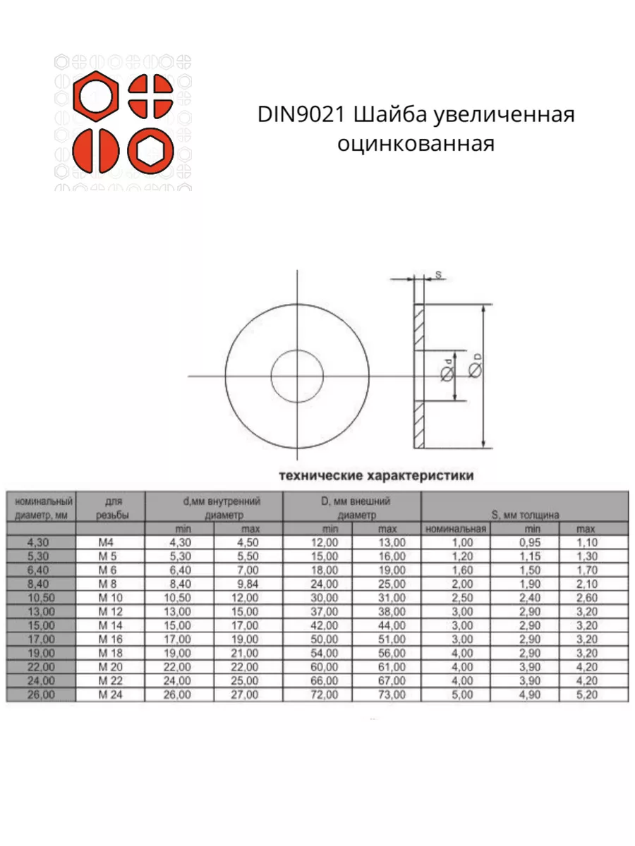 | Шайба увеличенная М6,8,10 ОЦ DIN 9021 (по 50 шт.) | 11651 | 1 шт. |
