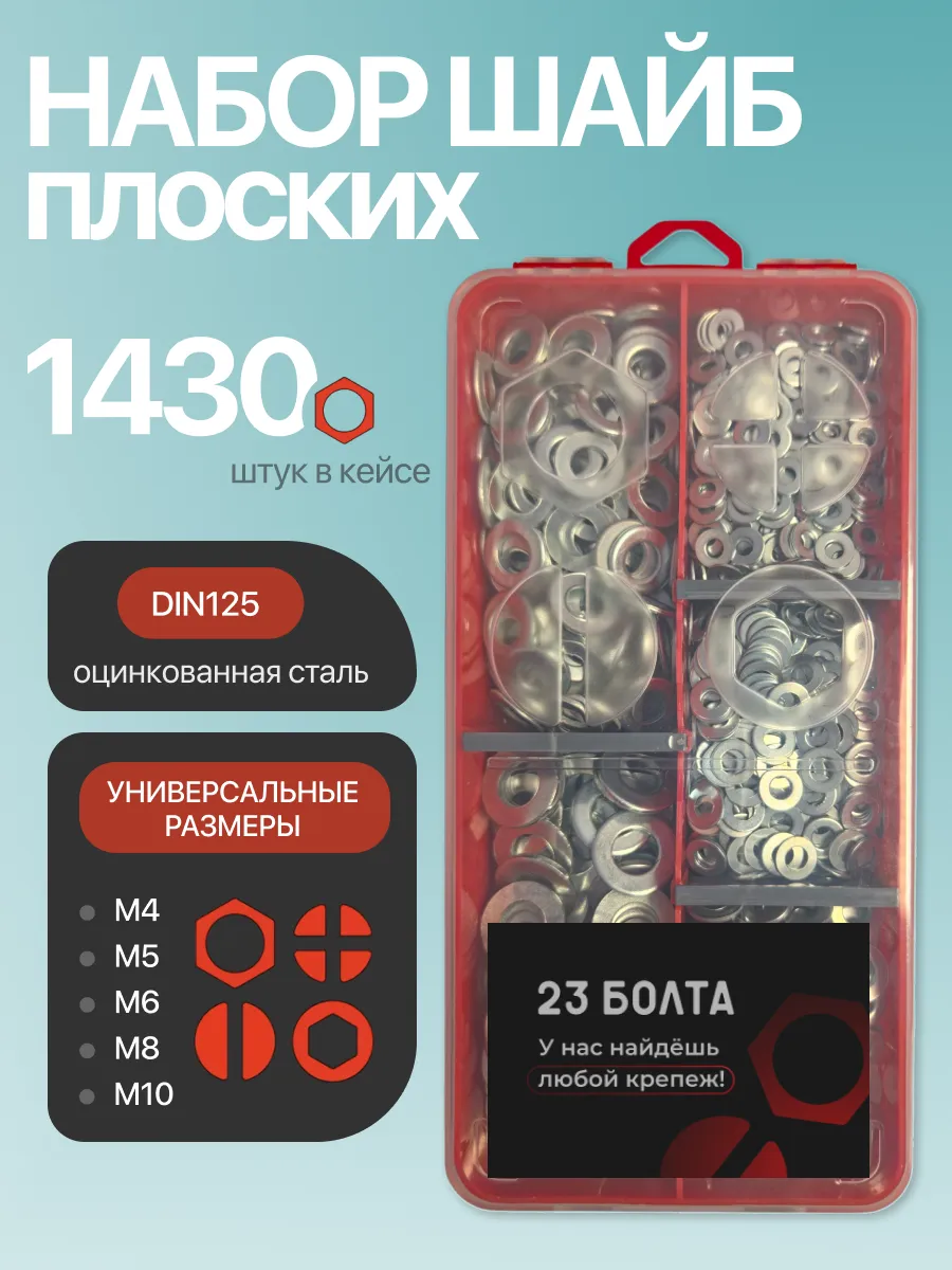 Шайбы плоские ОЦ М4,5,6,8,10 в органайзере НАБОР 1