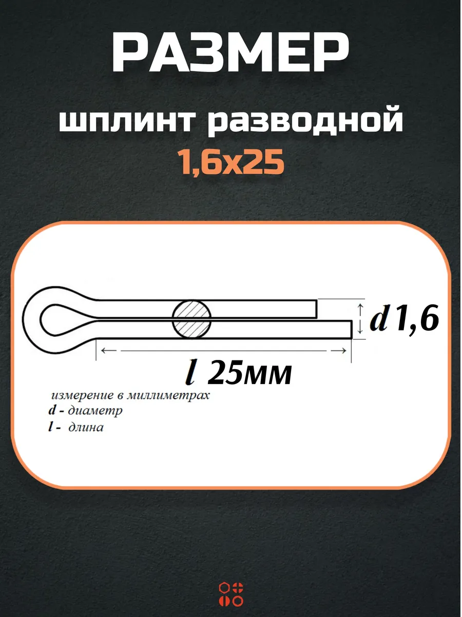 Шплинт прямой М1,6х25 DIN 94 для фиксации крепежа, 10 шт.