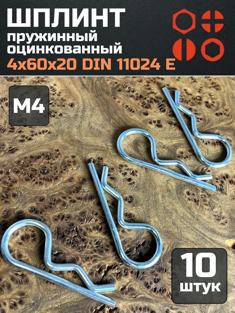 Шплинт пружинный 4х60х20 DIN 11024 E оцинкованный, 10 шт.