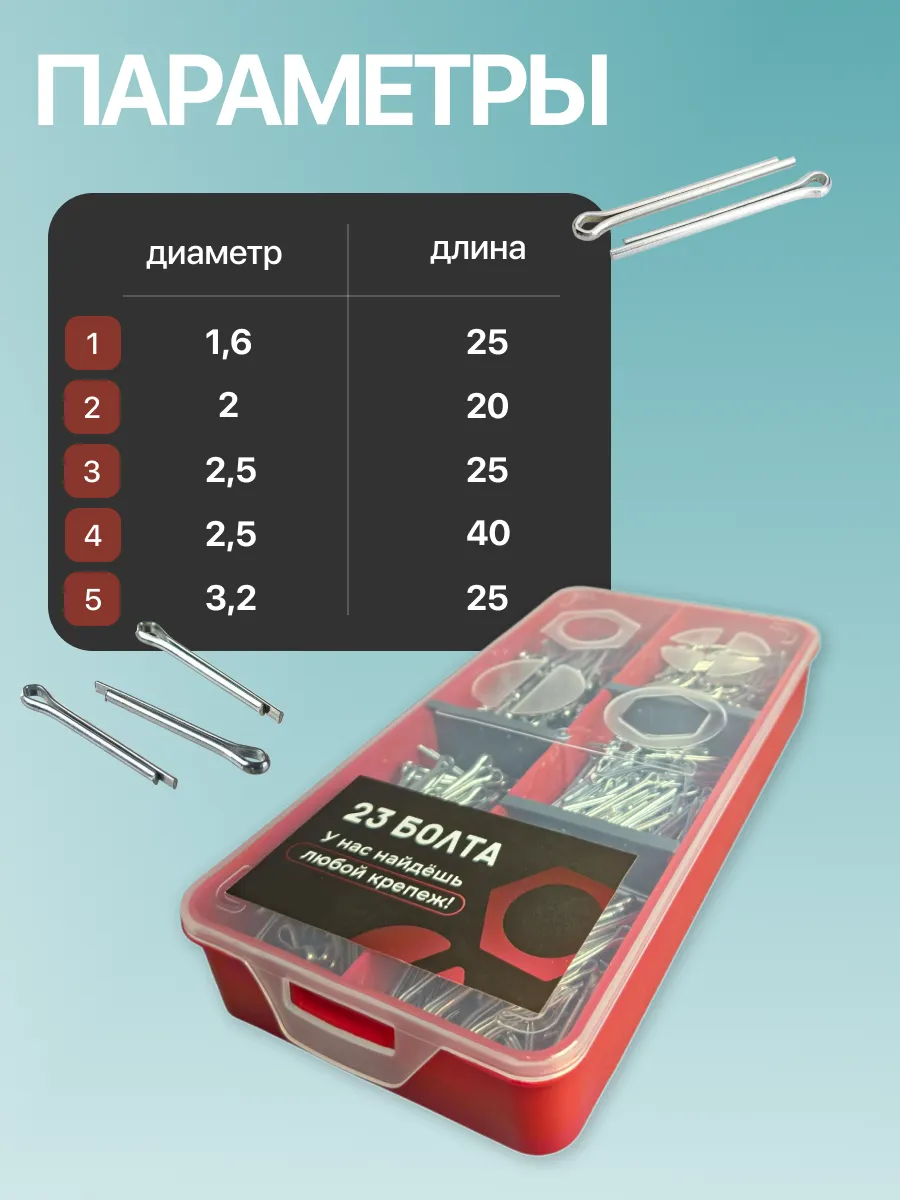 Шплинты прямые для фиксации крепежа в органайзере НАБОР 1