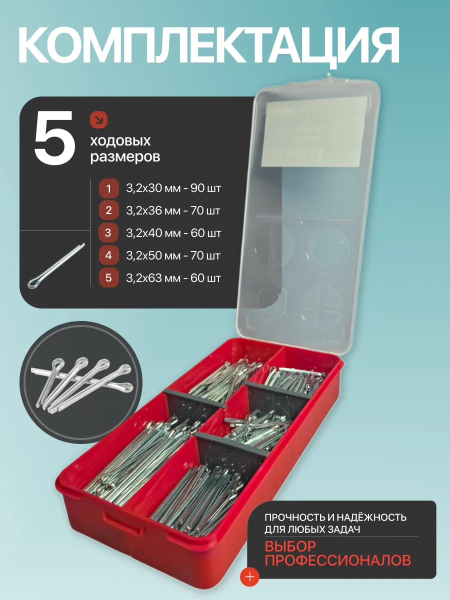 Шплинты прямые для фиксации крепежа в органайзере НАБОР 2