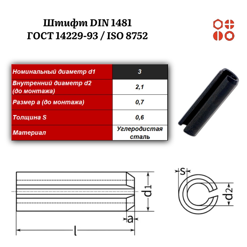 Штифт пружинный DIN 1481 3х25 / ГОСТ 14229-93 / ISO 8752, 1000 шт.