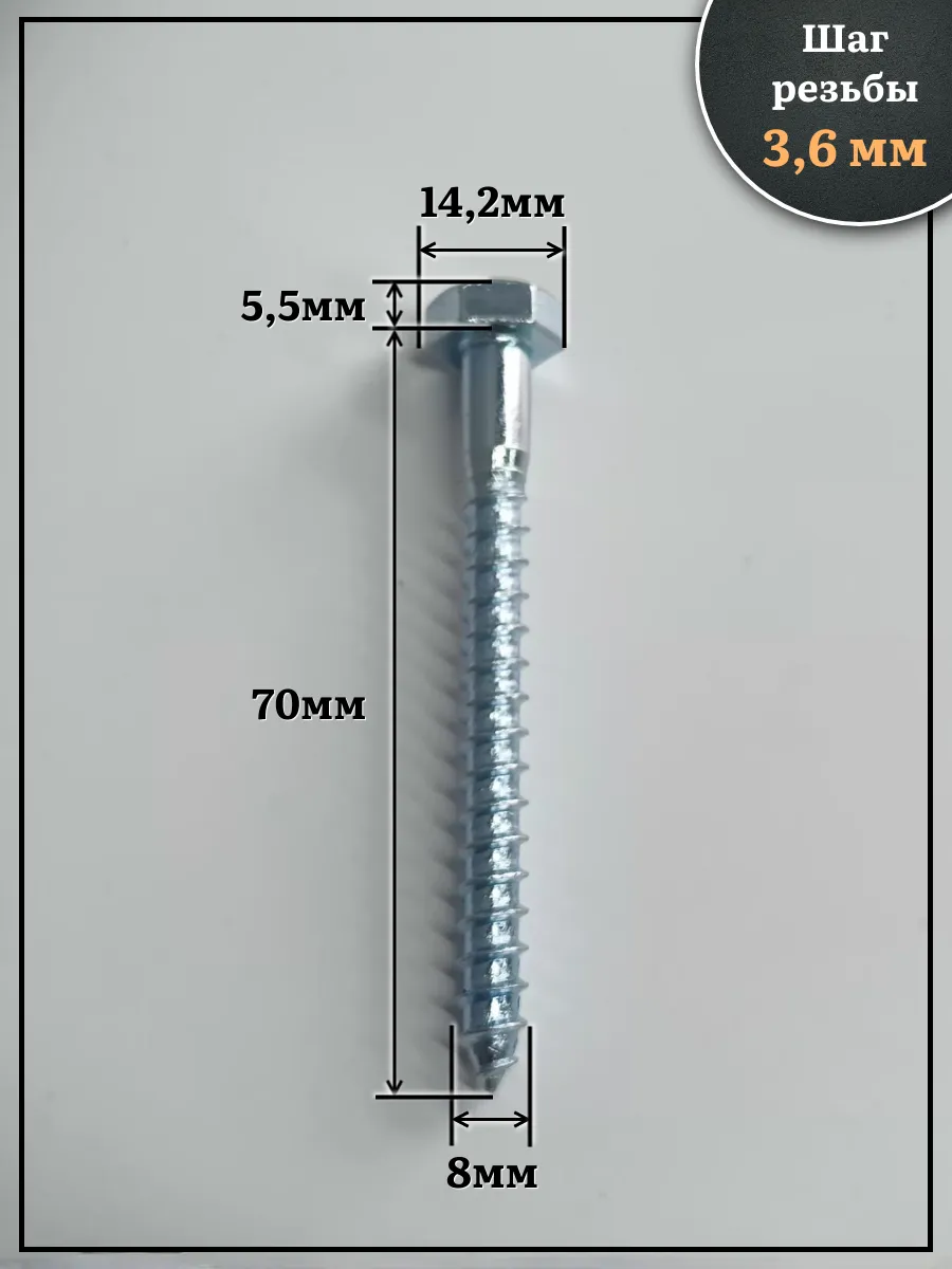 Шуруп глухарь по дереву 8х70 , 50 шт.