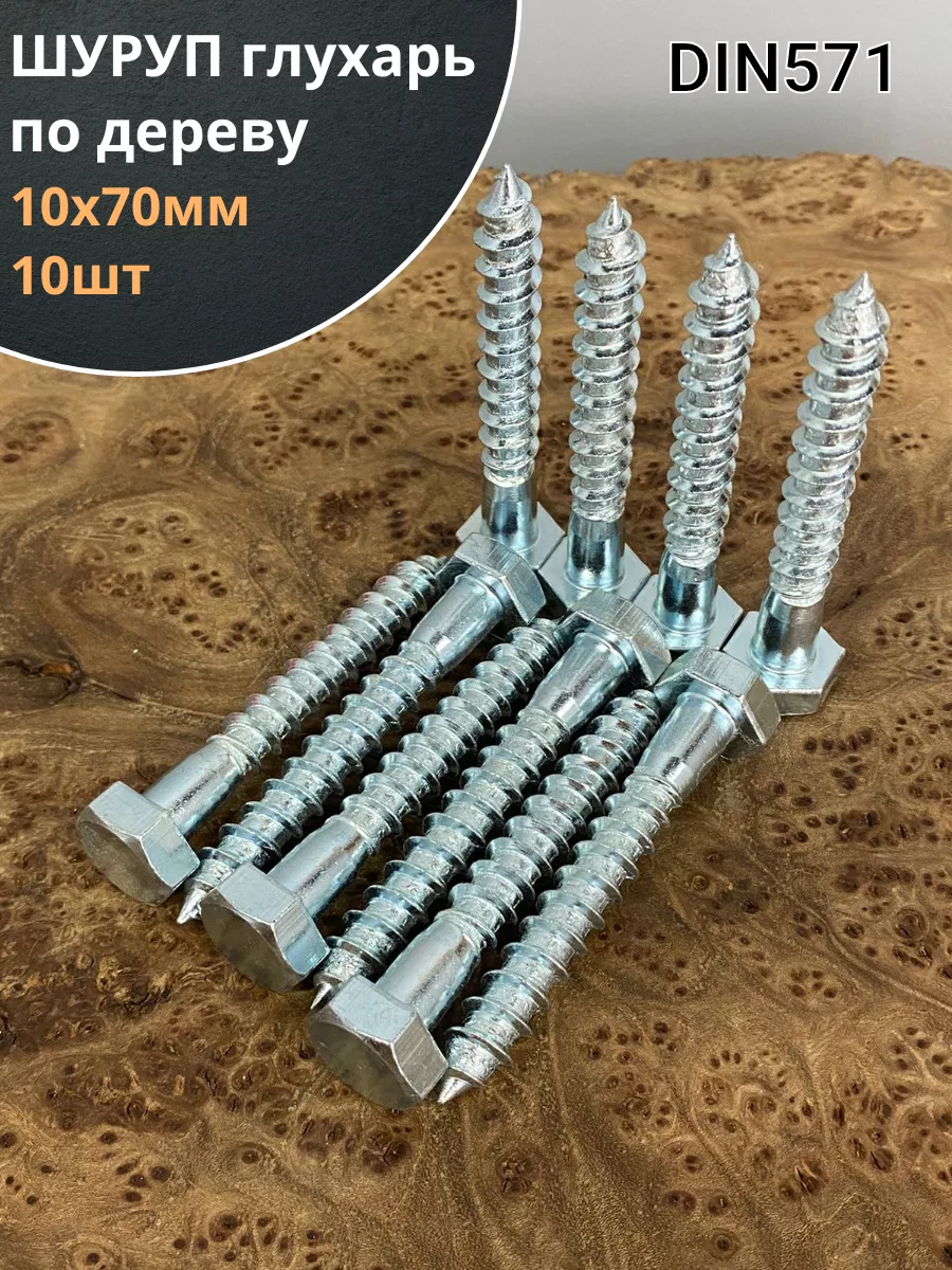 Шуруп глухарь по дереву 10х70, 10 шт.