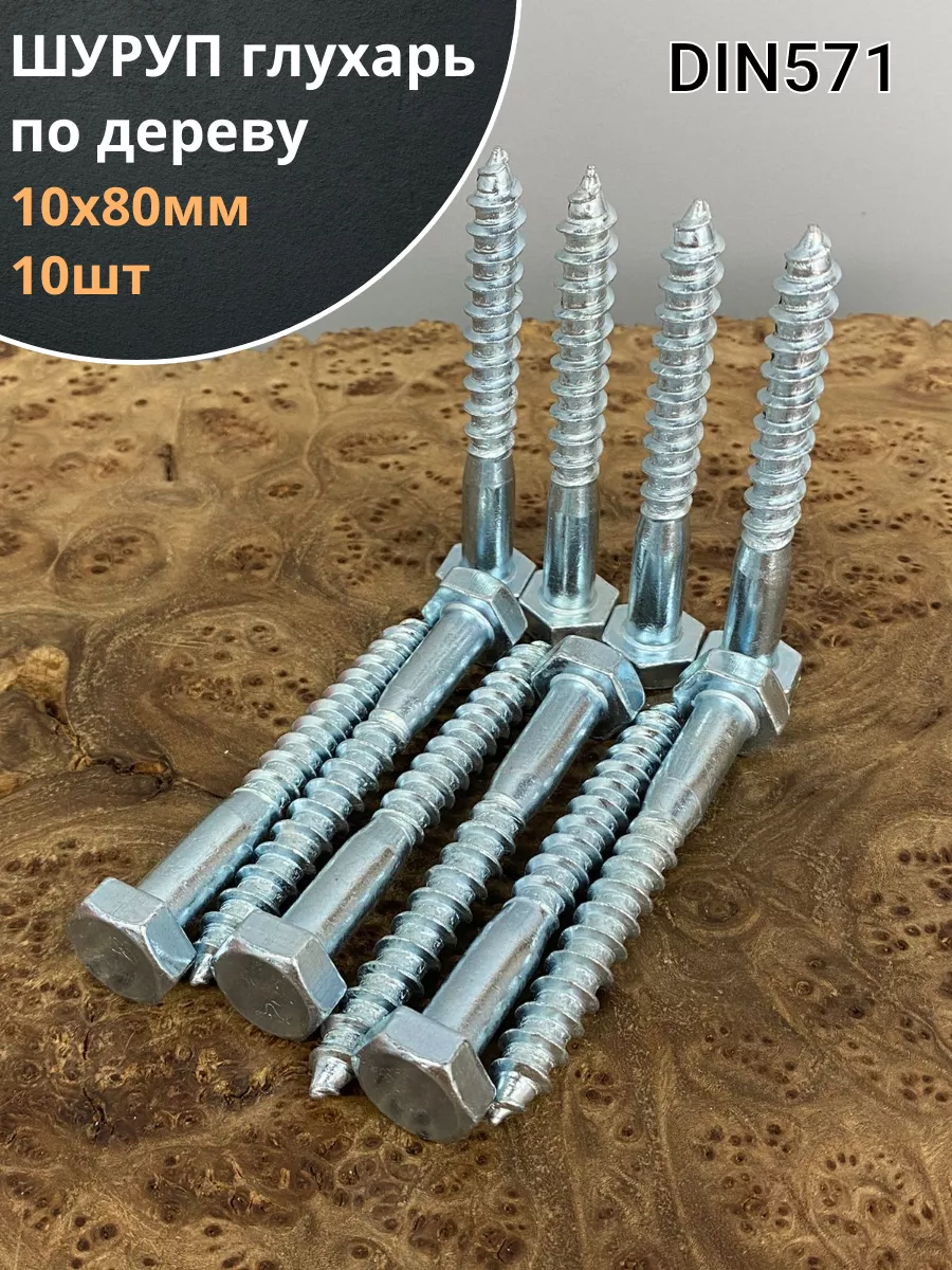 Шуруп глухарь по дереву 10х80, 10 шт.