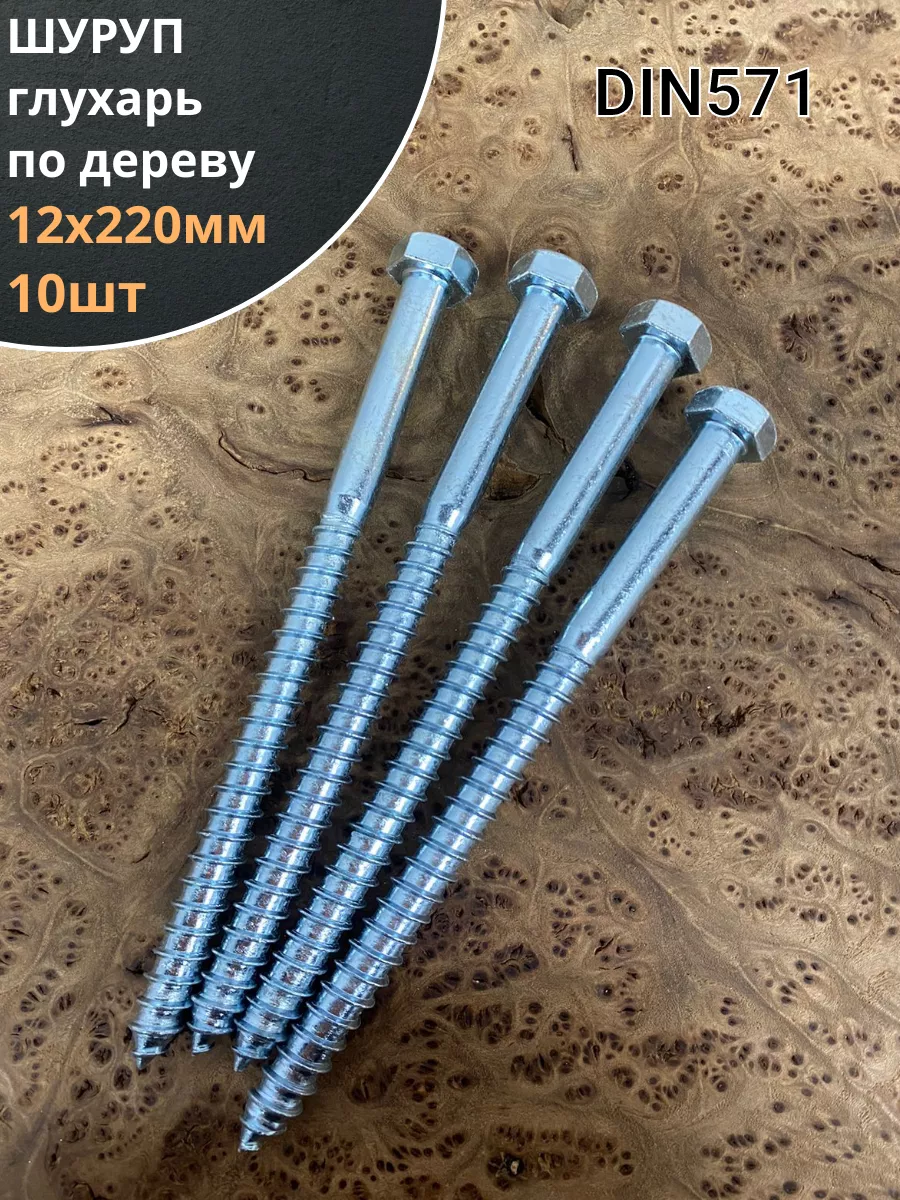 Шуруп глухарь по дереву 12х220 , 10 шт.