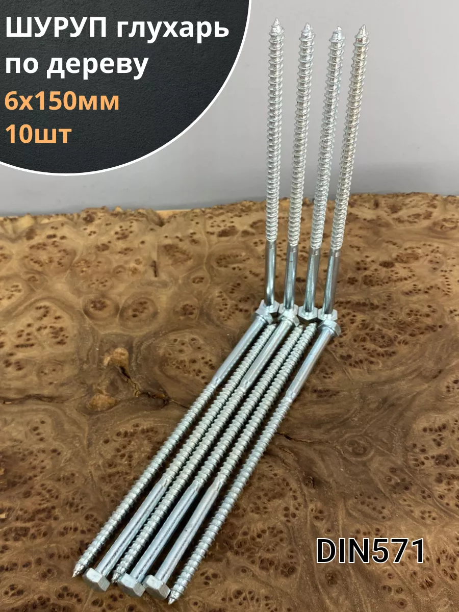Шуруп глухарь по дереву 6х150, 10 шт.