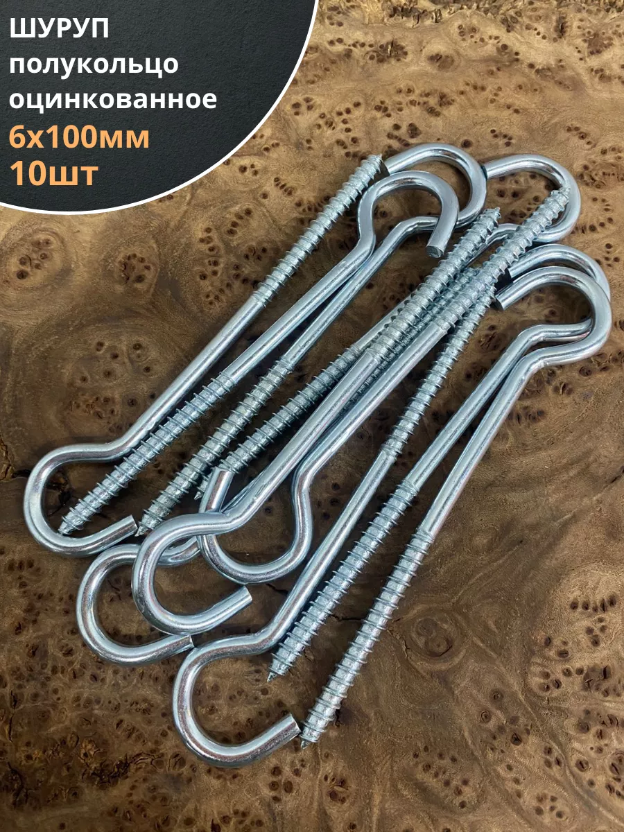 Шуруп-полукольцо, 6х100 , оцинкованное 10 шт.