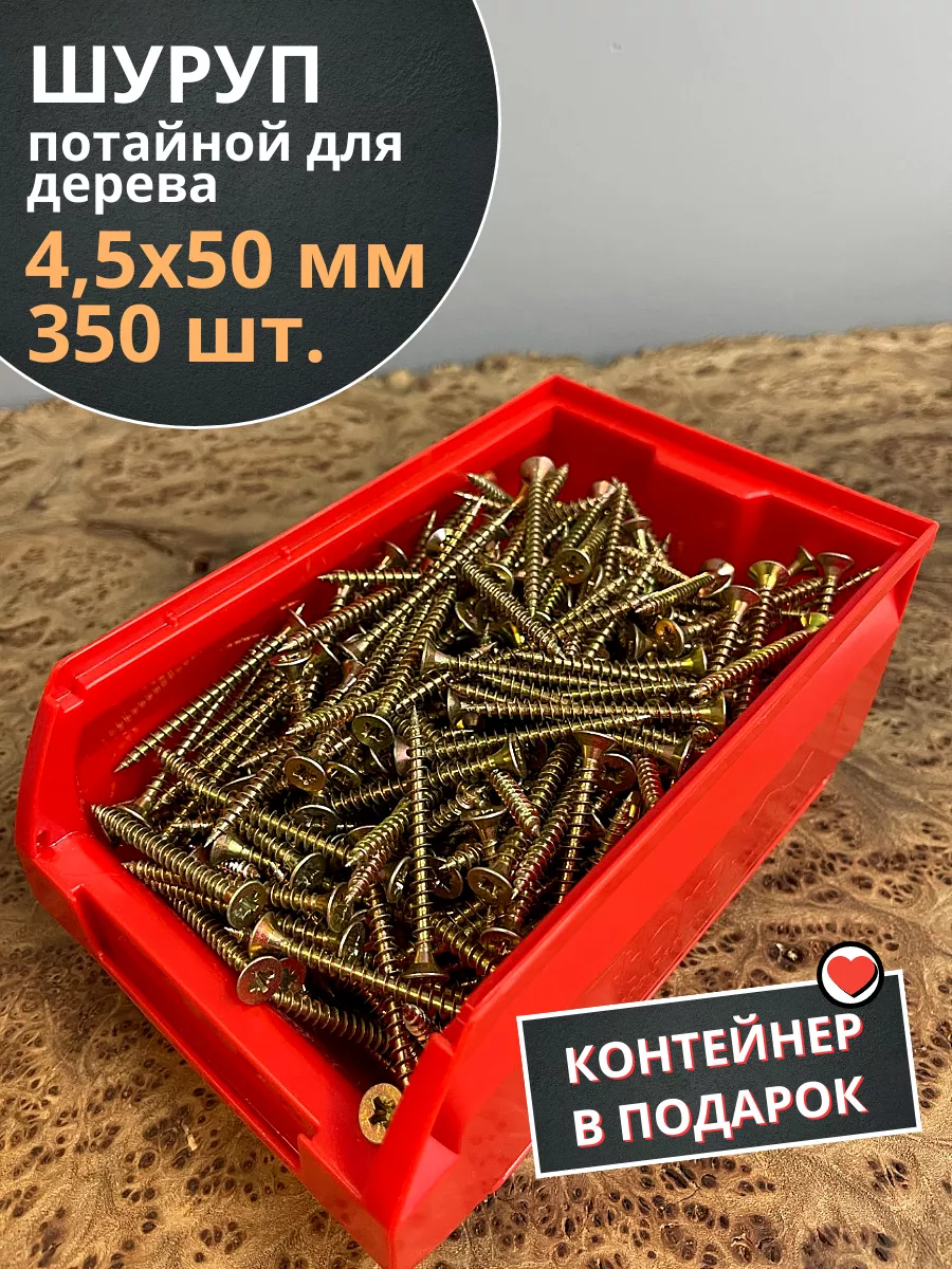 Шуруп потайной для дерева 4,5х50 ЖЦ, в контейнере, 350 шт.