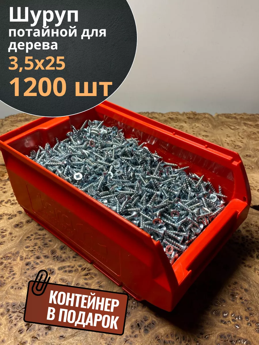 Шуруп потайной для дерева Б 3,5х25 БЦ,в контейнере, 1200 шт.