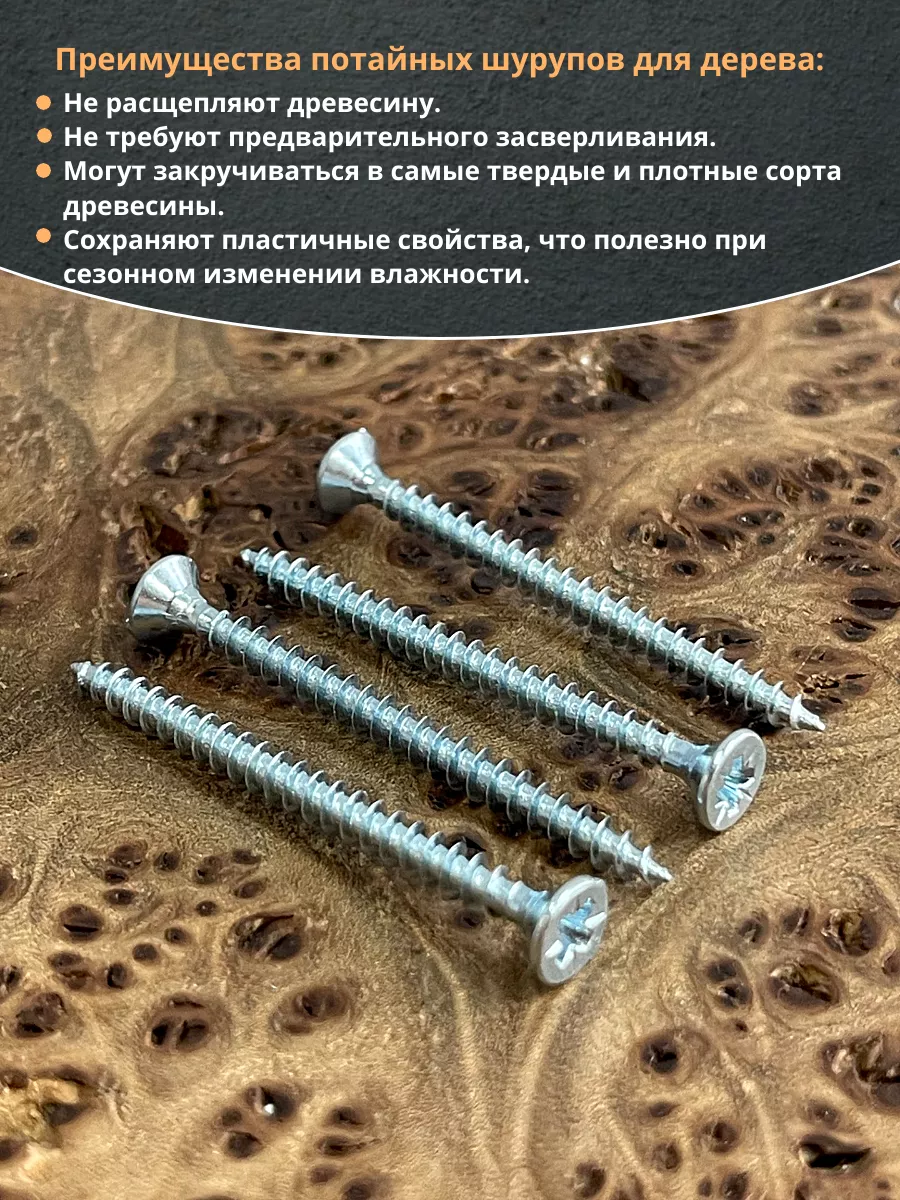 Шуруп потайной для дерева Б 3,5х50 БЦ, 100 шт.