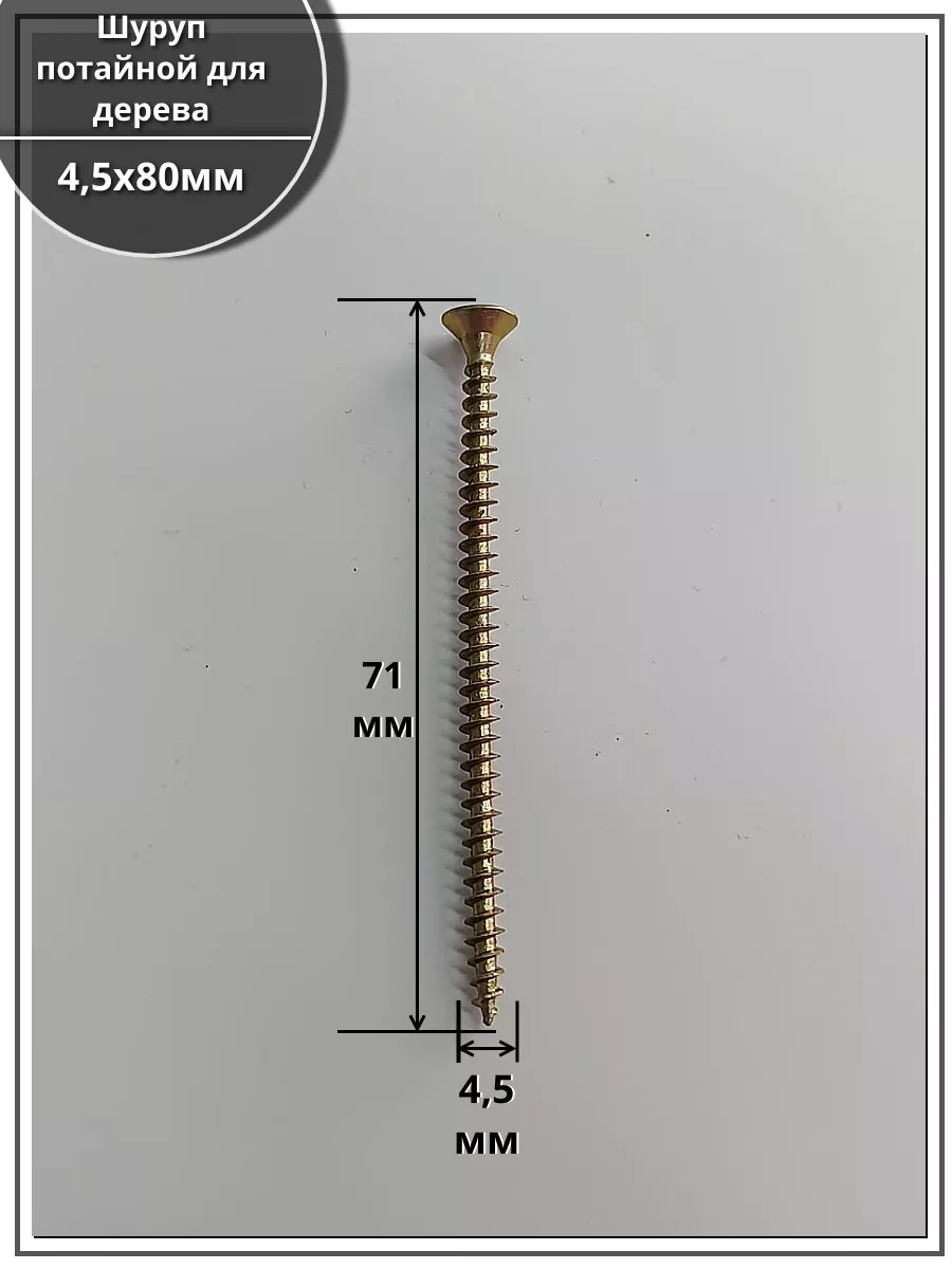 | Шуруп саморез потайной для дерева 4,5х80 ЖЦ, 10 шт. | B04004508064007ф10 | 1 шт. |