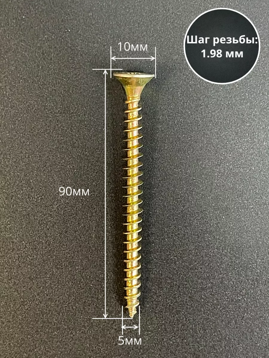 Шуруп саморез потайной для дерева 5х90 мм, желтый цинк, 1 кг.