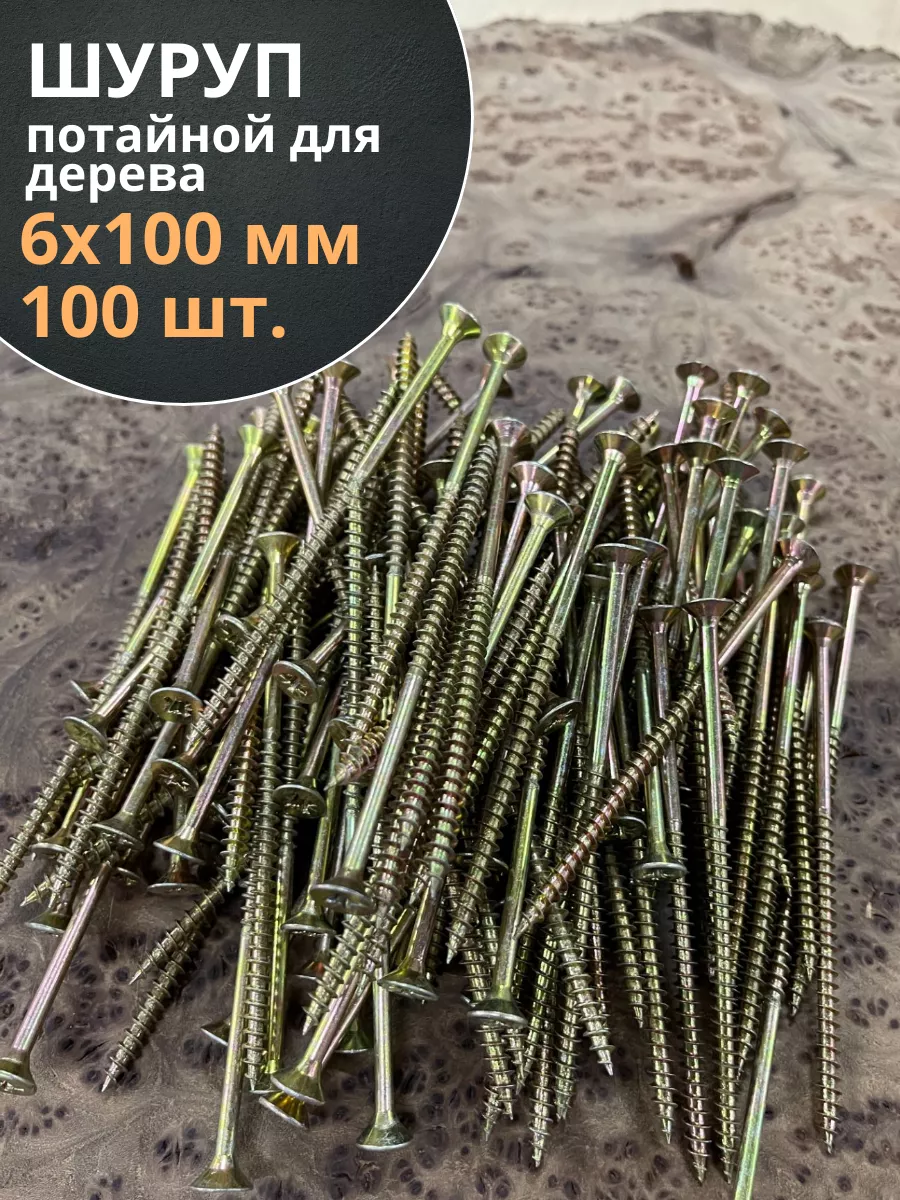 Шуруп саморез потайной для дерева 6х100 ЖЦ, 100 шт.