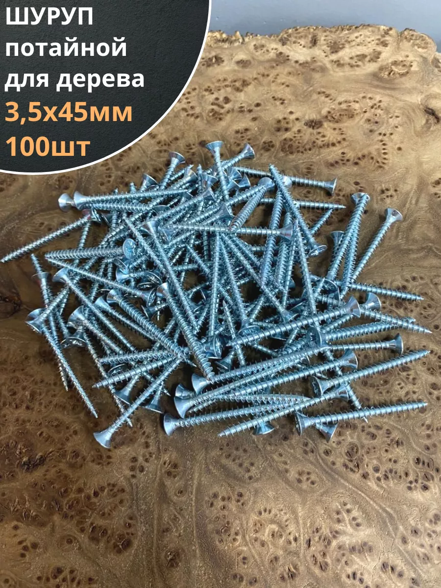 Шуруп саморез потайной для дерева Б 3.5х45 БЦ, 100 шт.