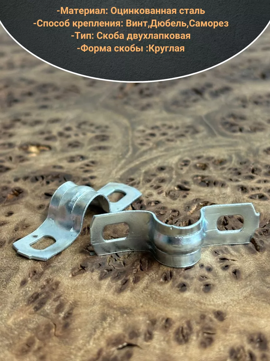 Скоба металлическая двухлапковая 14-15 мм для кабеля, 10 шт
