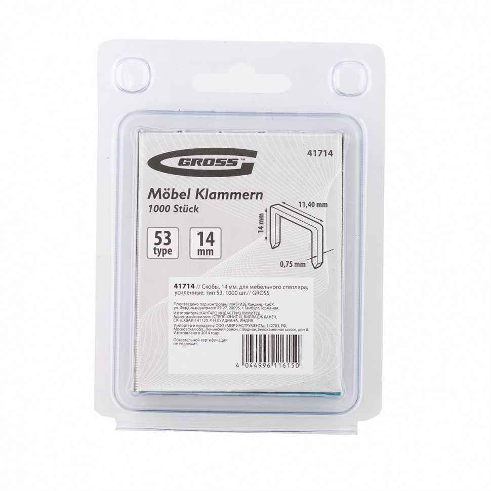 Скобы для степлера мебельного усиленные тип 53 1000 шт Gross