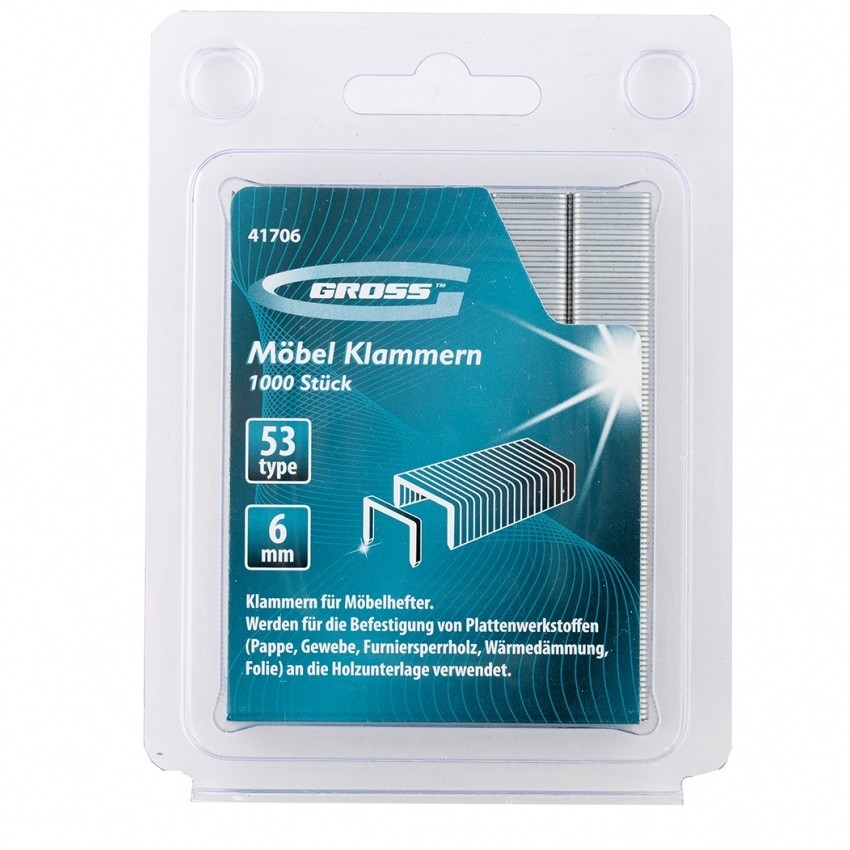 Скобы для степлера мебельного усиленные тип 53 6 мм 1000 шт Gross