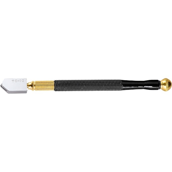 Широкая головка специальной формы позволяет располагать стеклорез под разными углами к поверхности, что облегчает резку.