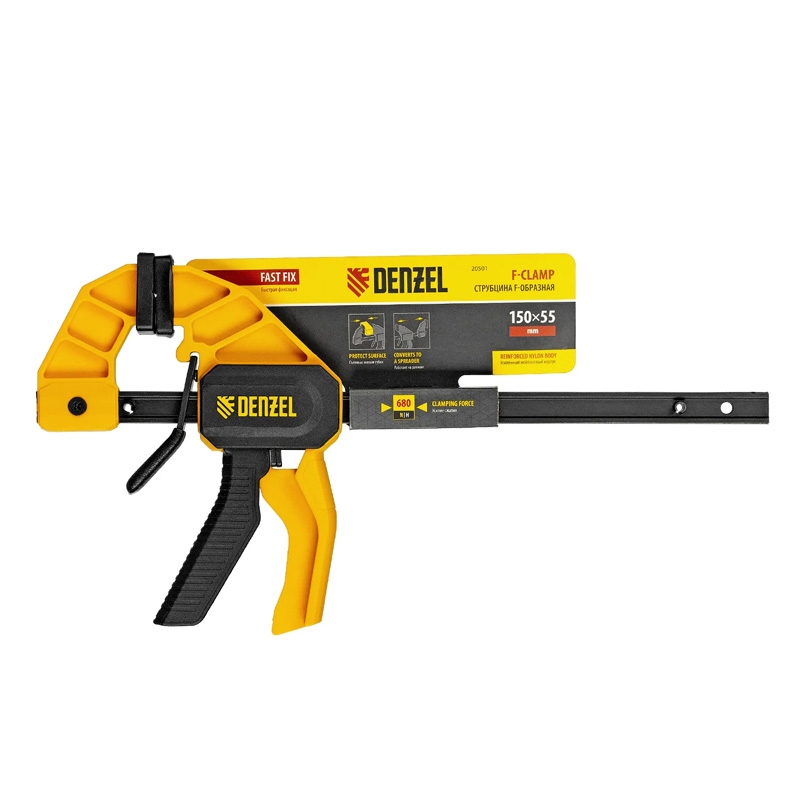 Струбцина тип F усиленная быстрозажимная, нейлоновый корпус 55х150 мм Denzel