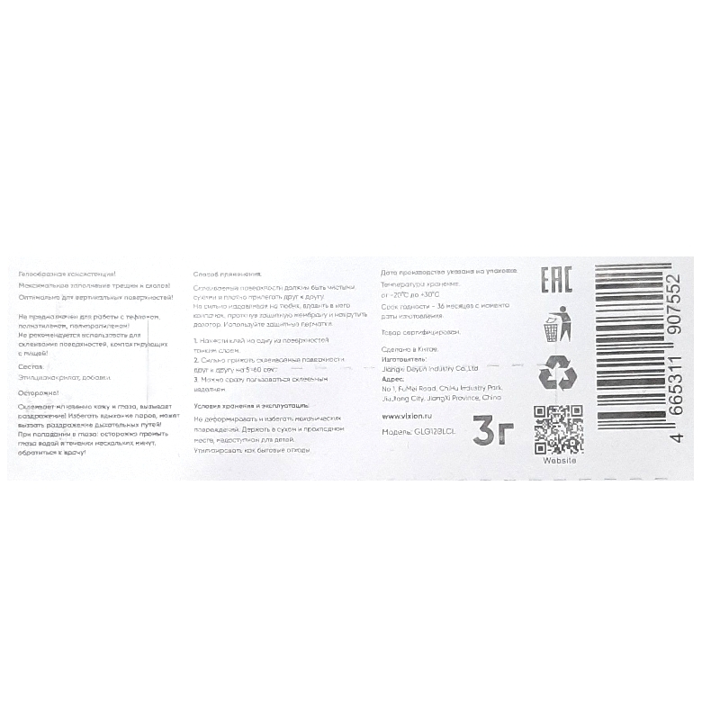 Супер клей-гель универсальный прозрачный 3 гр. VIXION PRO