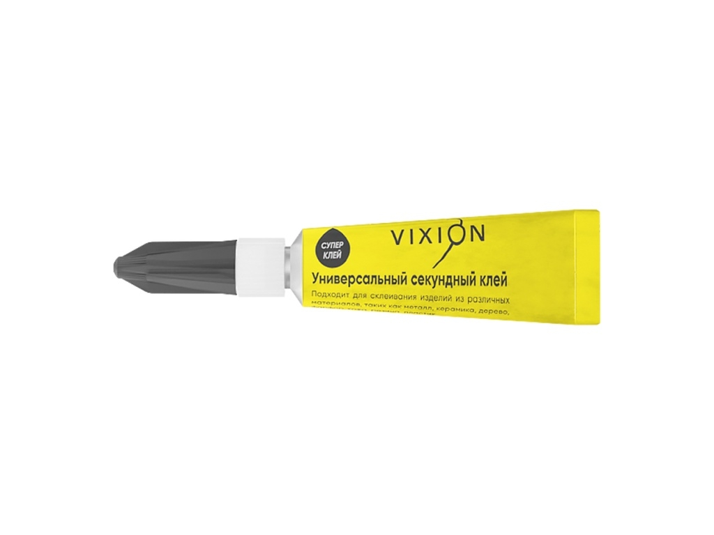 Супер клей универсальный прозрачный 3 гр. VIXION PRO идеален для быстрых ремонтных работ. Клей хорошо растекается, максимально заполняет трещины и моментально застывает. Предназначен для быстрого склеивания дерева, кожи, резины, бумаги, фарфора, пластика и металла. Клей хорошо переносит перепады температур. Объем 3г. Обеспечит мгновенное склеивание за 5 секунд. Благодаря своей жидкой консистенции клей позволяет максимально заполнить трещины при склеивании деталей. Суперклей быстро затвердевает и обладает высокой прочностью. Благодаря своей прозрачности незаметен на предметах. Чтобы достичь наилучшего результата при склеивании, рекомендуем очистить и высушить поверхности, затем покрыть их клеем и плотно прижать друг к другу. Используйте защитные перчатки!