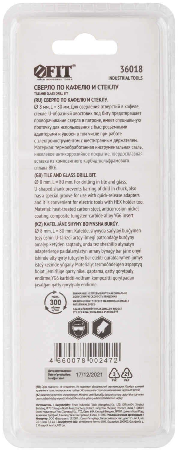 Сверло по кафелю и стеклу 8 мм
