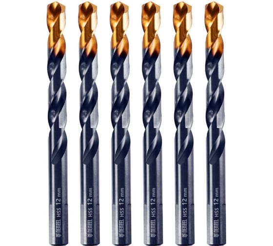 Сверло по металлу Golden Tip 12 мм, HSS-Tin, 6 шт, DIN 338 Denzel 717224 предназначено для сверления сквозных и глухих отверстий в легированной и нелегированной стали, железе, чугуне, листовом и цветном металлах, пластмассе.