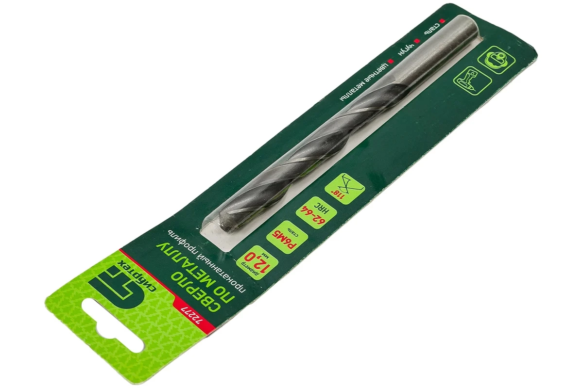 Сверло по металлу Сибртех 72278 из стали P6M5 имеет угол заточки 118 градусов и позволяет получать отверстия диаметром 12,5 мм в черных и тяжелых металлах, в том числе стали, чугуне и твердой бронзе. Сверло отличается наиболее выгодной стоимостью по сравнению с другими моделями из стали P6M5. Используется для монтажно-сборочных работ, будет полезно в быту. Сверло изготовлено из быстрорежущей стали, легированной вольфрамом и молибденом, поэтому устойчиво к динамическим нагрузкам и перегреву.