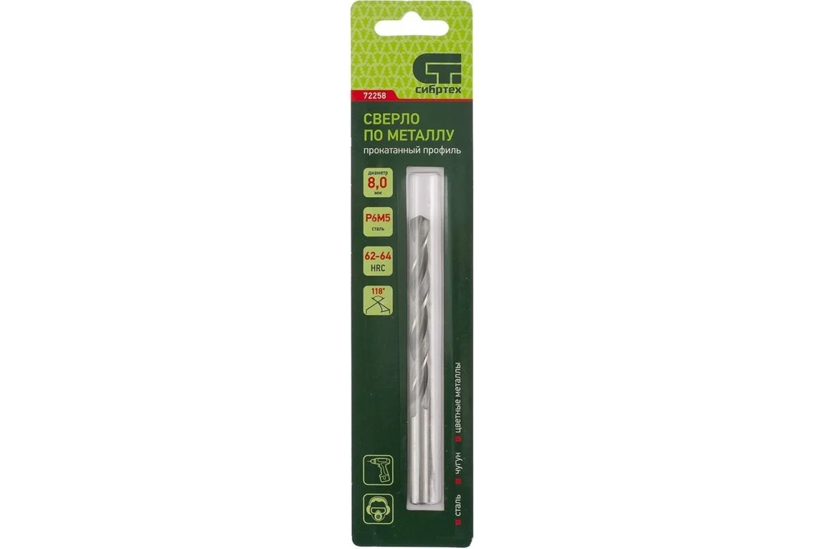 Сверло по металлу 8,0 мм Р6М5 Сибртех 72258 1 шт.