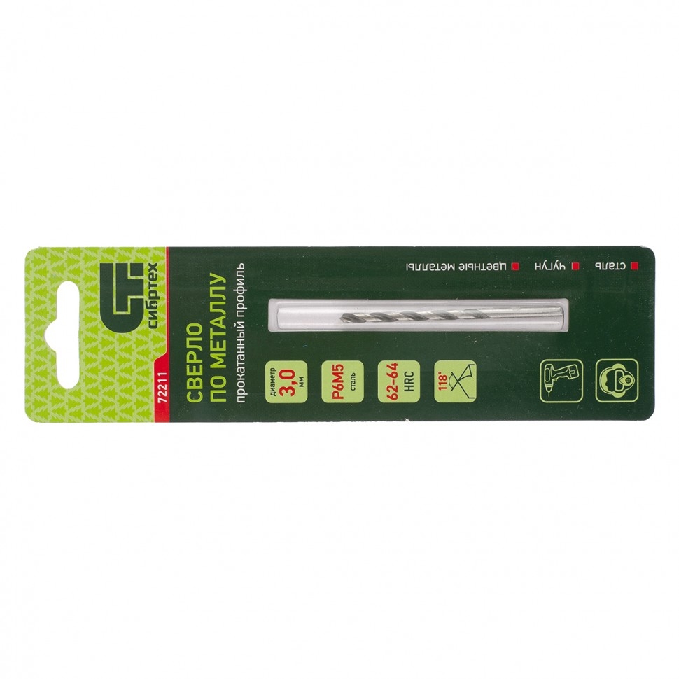 Сверло по металлу 3,0 мм Р6М5 Сибртех 72211 1 шт.