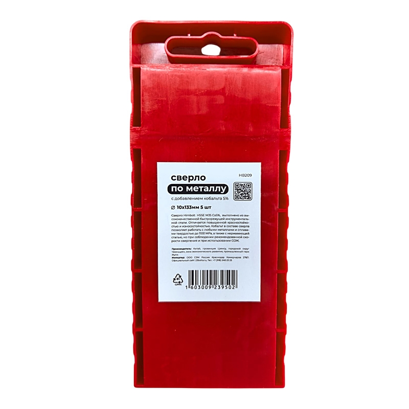 Сверло по металлу с кобальтом 5% P6M5K5 10,0 мм HIMBOLT 5 шт.пласт.бокс выполнено из высококачественной быстрорежущей инструментальной стали. Отличается повышенной красностойкостью и износостокойстью. Кобальт в составе сверла позволяет работать с любыми металлами и сплавами твердостью до 1100 МРА, а также с нержавеющей сталью, но при соблюдении рекомендованной скорости сверления и при использовании СОЖ.