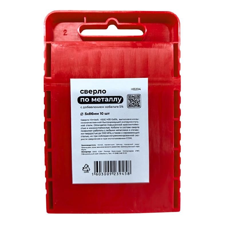 Сверло по металлу с кобальтом 5% P6M5K5 5,0 мм HIMBOLT 10 шт.пласт.бокс выполнено из высококачественной быстрорежущей инструментальной стали. Отличается повышенной красностойкостью и износостокойстью. Кобальт в составе сверла позволяет работать с любыми металлами и сплавами твердостью до 1100 МРА, а также с нержавеющей сталью, но при соблюдении рекомендованной скорости сверления и при использовании СОЖ.