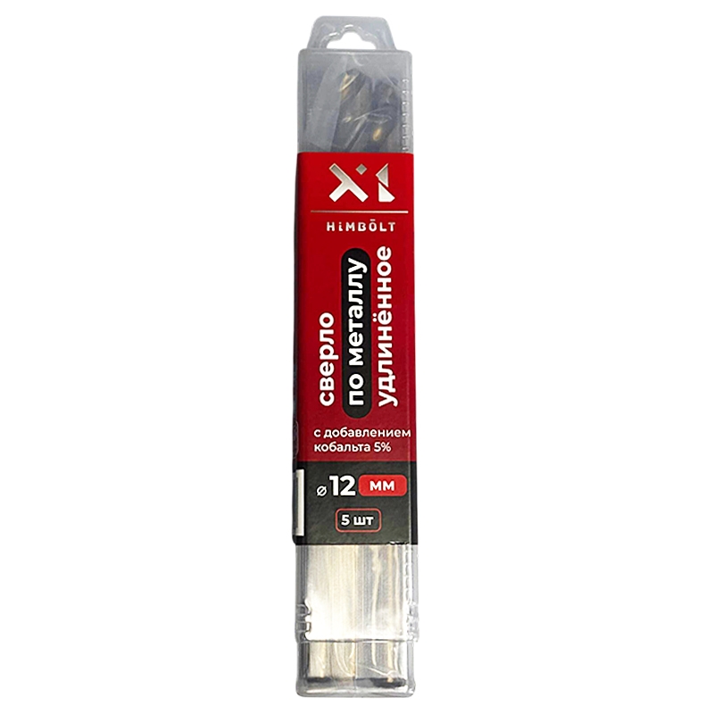 Сверло по металлу с кобальтом 5% P6M5K5 удлиненное 12,0 мм HIMBOLT 5 шт.пластиковый бокс