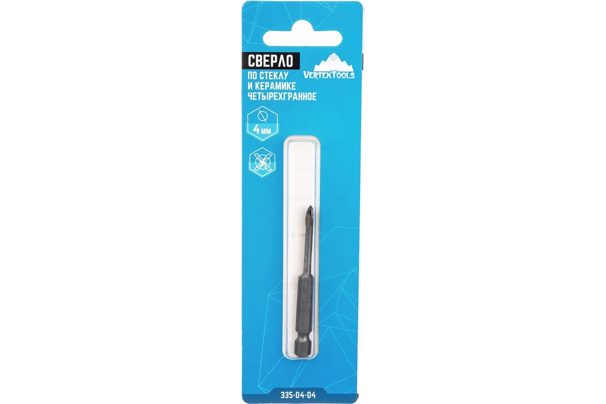 Сверло по плитке керамической и стеклу 4мм, четырехгр.хвостовик VERTEXTOOLS