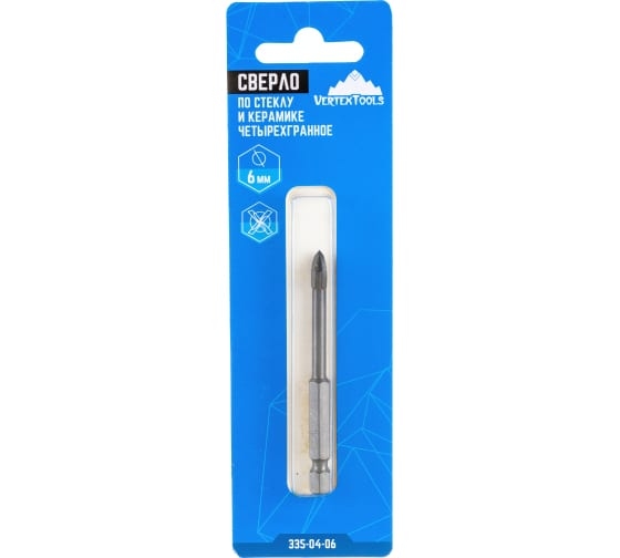 Сверло по плитке керамической и стеклу 6мм, четырехгр.хвостовик VERTEXTOOLS