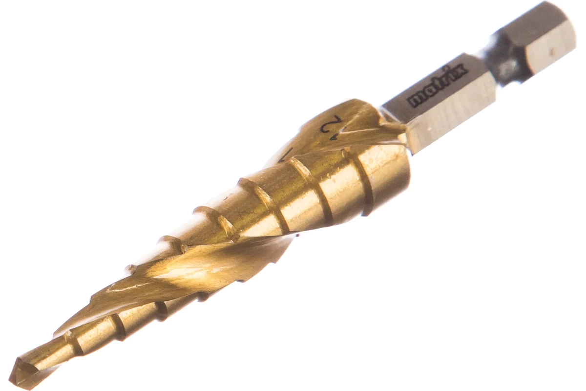 Сверло ступенчатое 4-5-6-7-8-9-10-11-12 мм,HSS,спирал.проф.,шестигр.хв Matrix