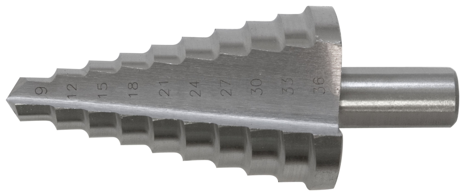 Сверло ступенчатое по металлу используется для сверления отверстий в тонких материалах (листовая сталь, цветные металлы, пластмасса), а также для рассверливания существующих отверстий. Лазерная заточка режущих кромок. Материал: быстрорежущая (HSS) сталь.